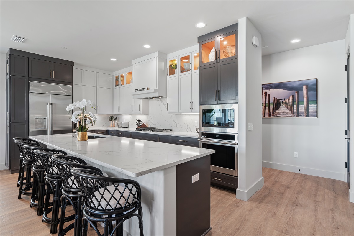 Kitchen: The fully equipped modern kitchen boasts stainless steel appliances, granite countertops, and all the essentials you need to prepare delicious meals. A cozy breakfast bar provides additional seating, perfect for quick snacks or casual dining.