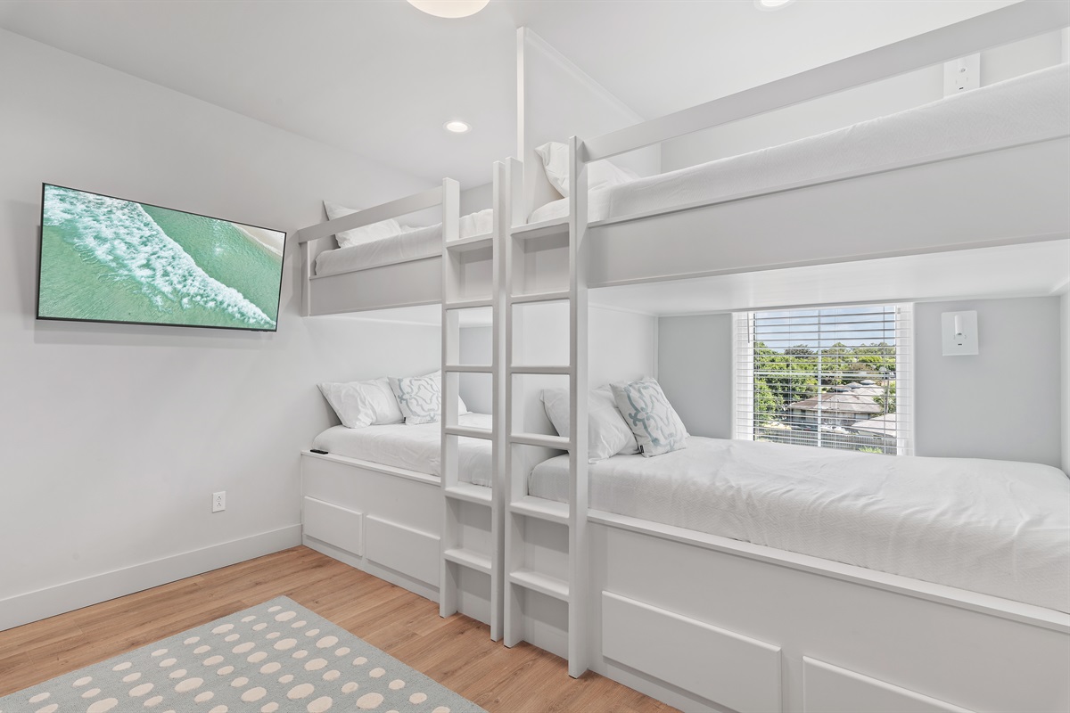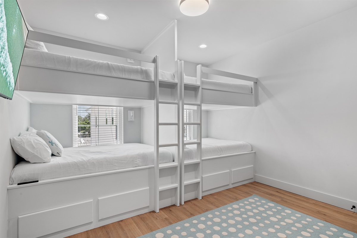 The 4th bedroom is a bunk room with 4 full size bunks and a large walk in closet. This room shares a hallway bathroom with a tub/shower.