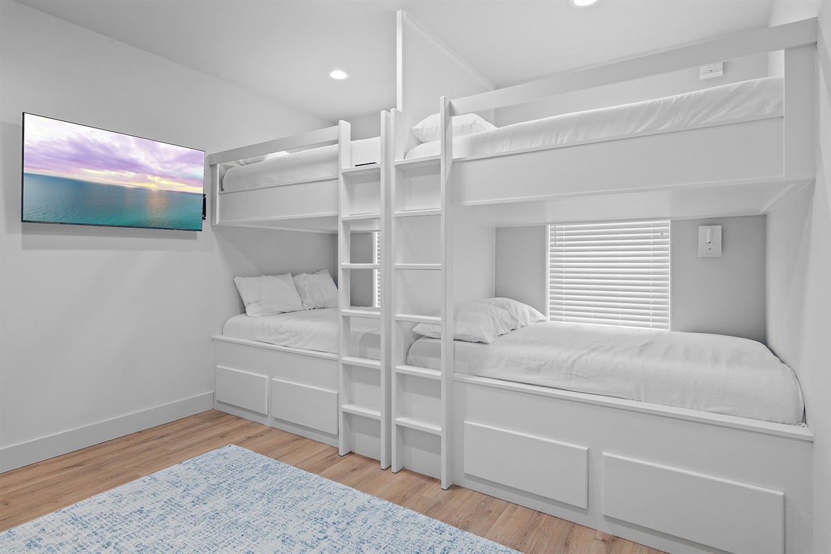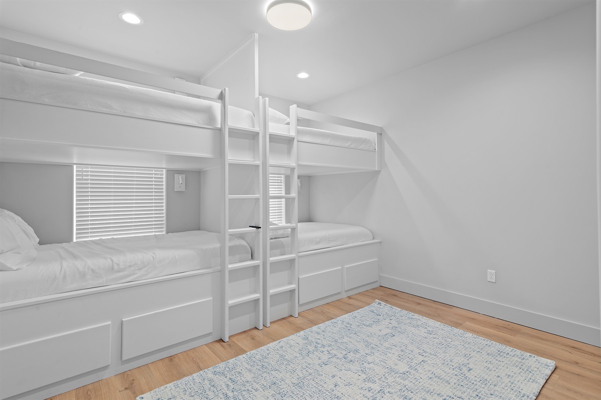 The 4th bedroom is a bunk room with 4 full size bunks and a large walk in closet. This room shares a hallway bathroom with a tub/shower.