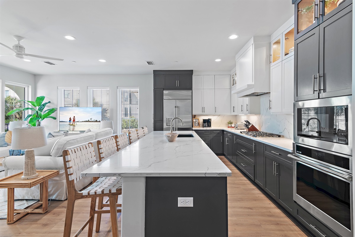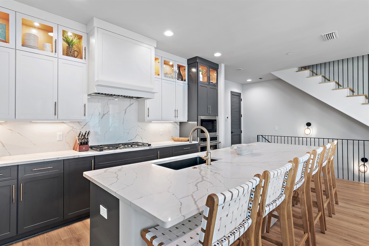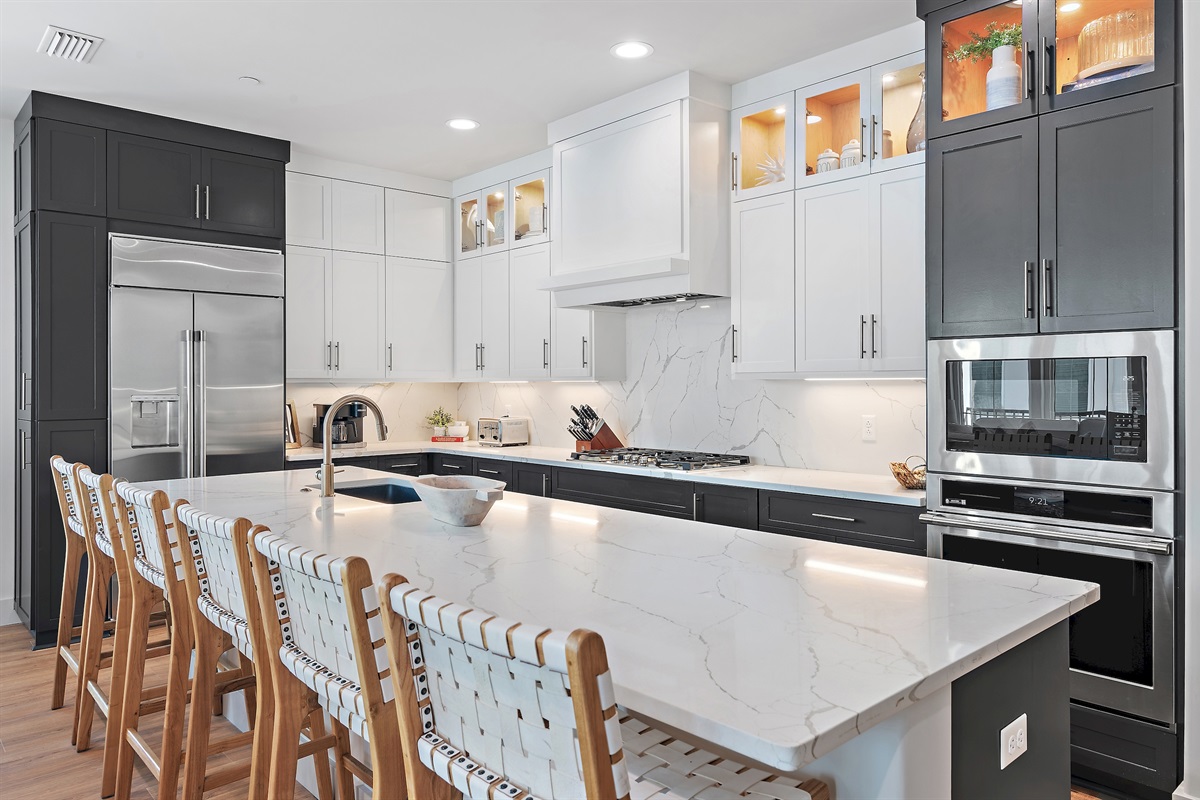Kitchen: The fully equipped modern kitchen boasts stainless steel appliances, granite countertops, and all the essentials you need to prepare delicious meals. A cozy breakfast bar provides additional seating, perfect for quick snacks or casual dining.