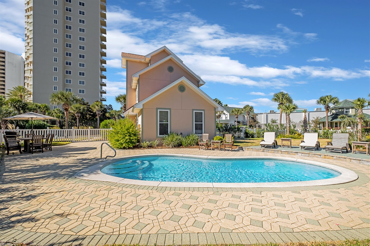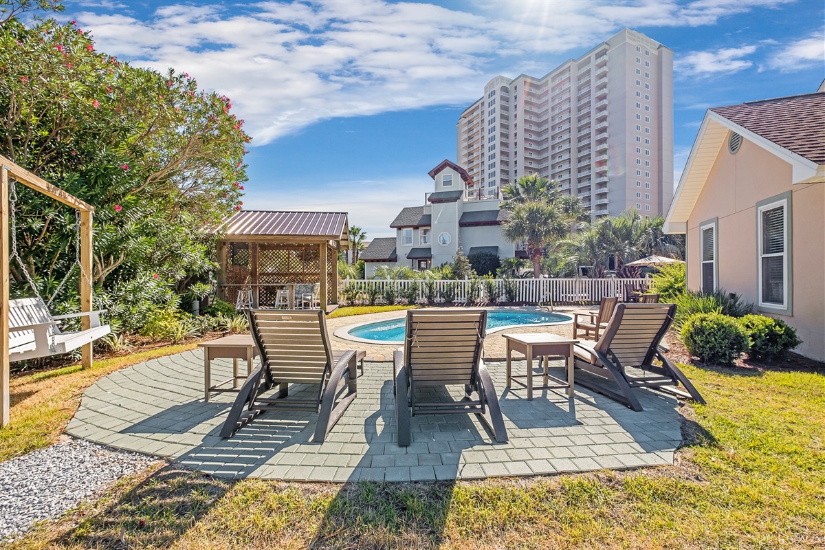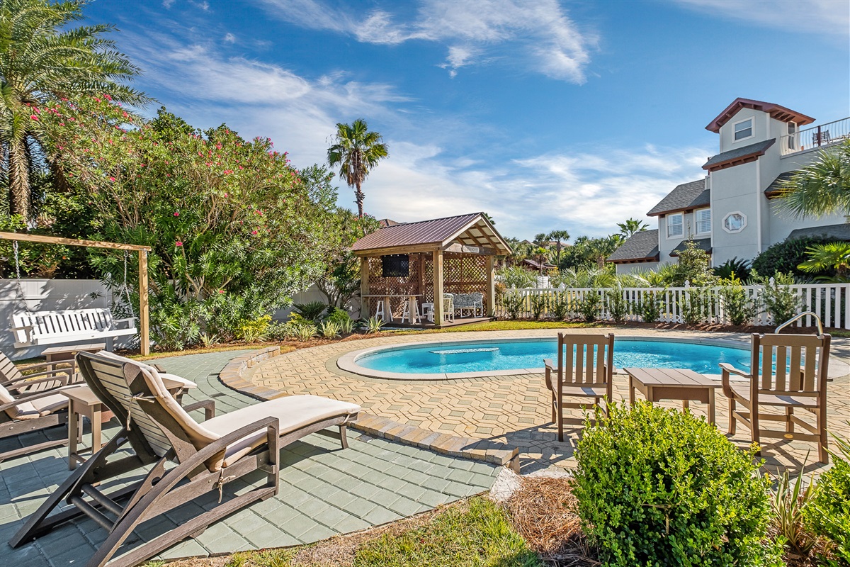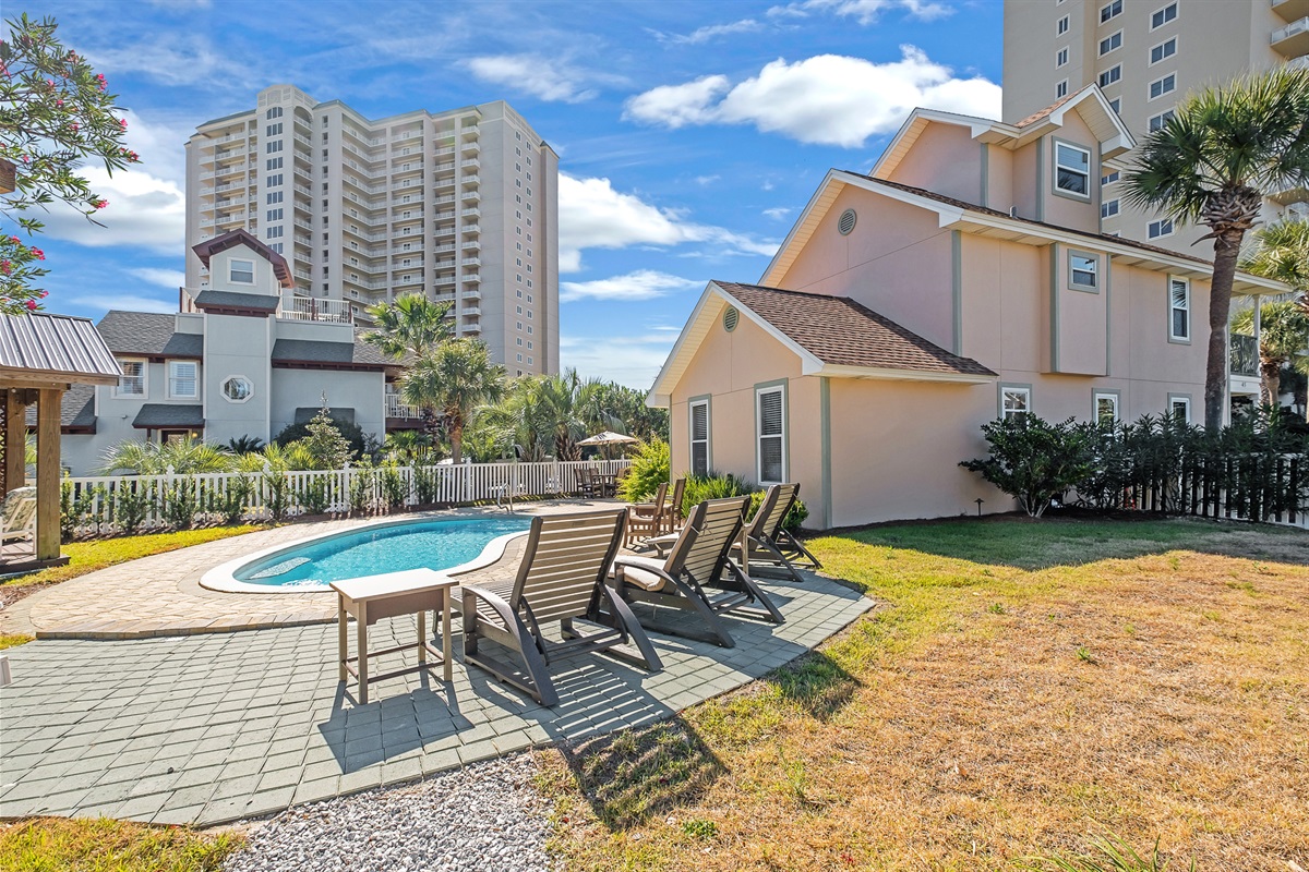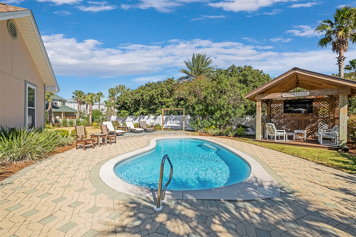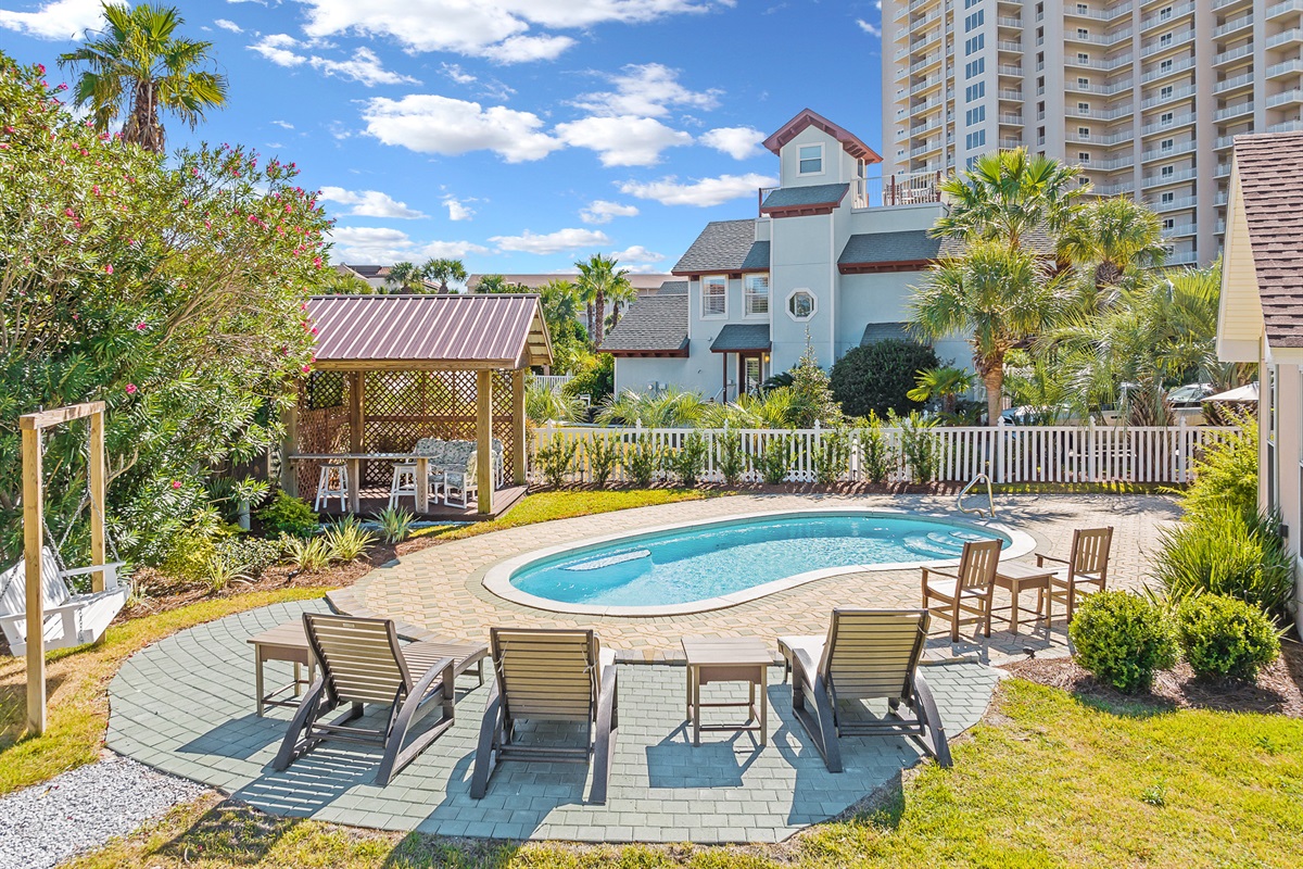 Pool floats and sand toys provided.Private Yard