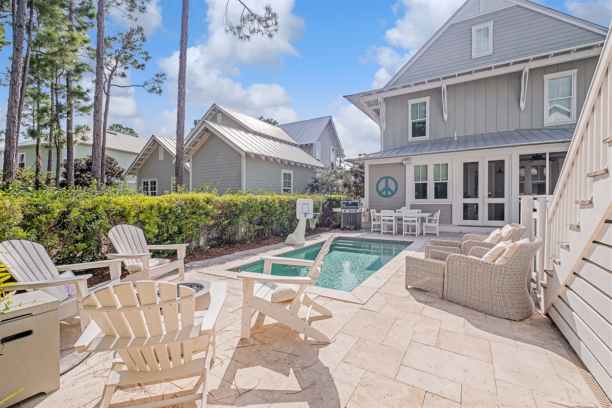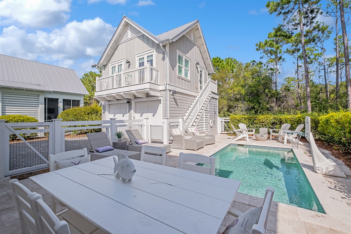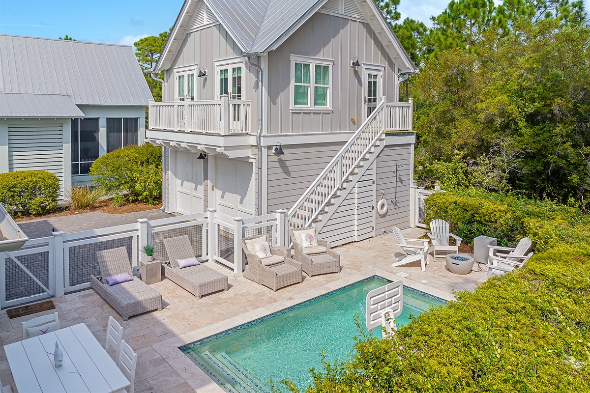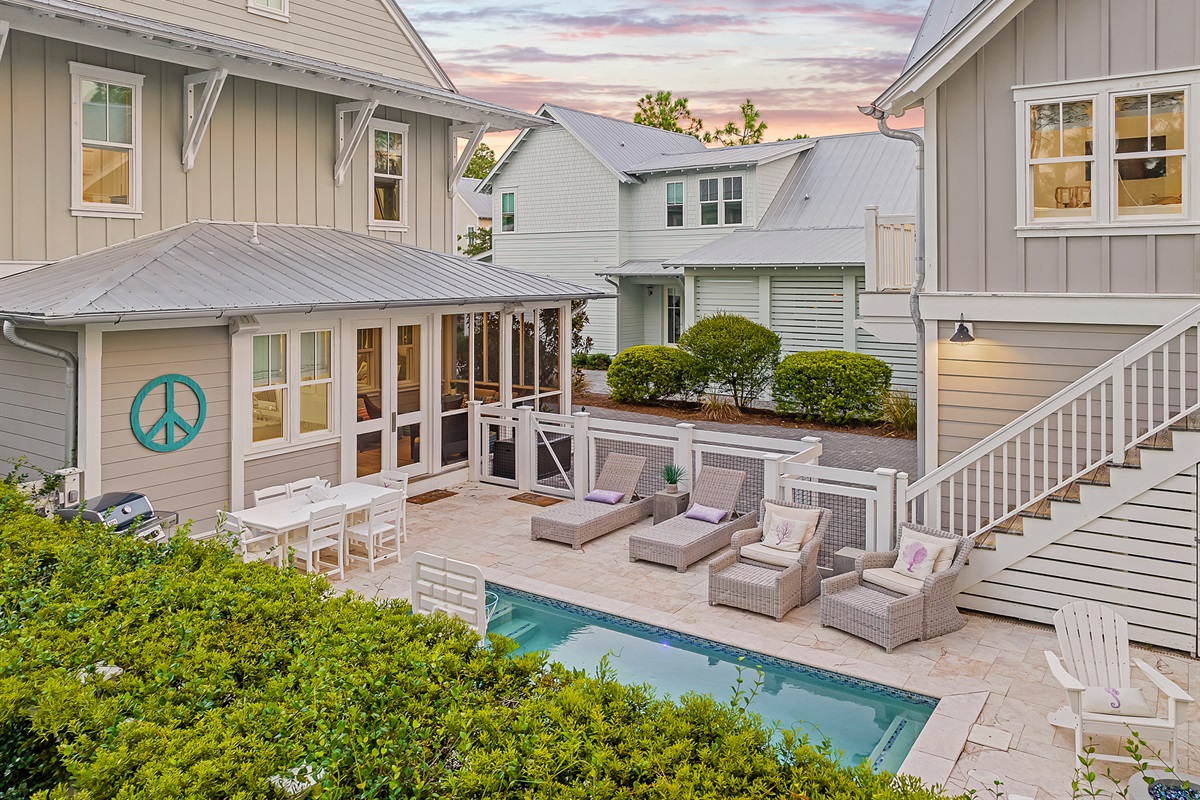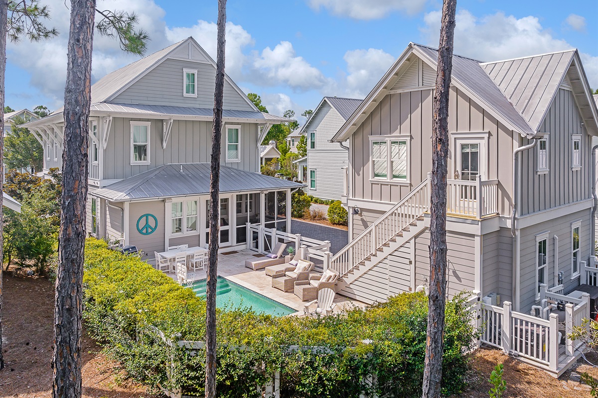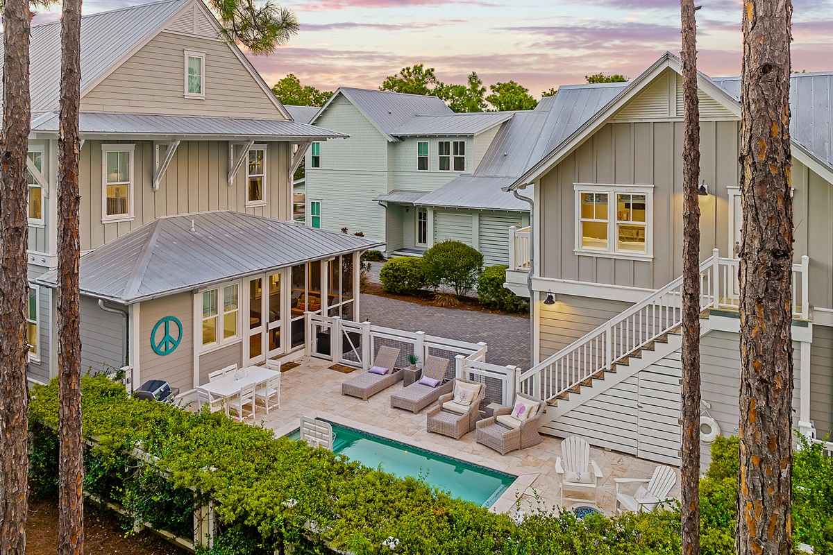 Welcome to "Find Your Peace," an enchanting vacation home nestled in the serene community of WaterColor. This luxurious retreat offers a private pool, a charming carriage house, and exceptional amenities, perfect for large families or groups. With accommodations for up to 16 guests, it's an ideal choice for creating lasting memories.
