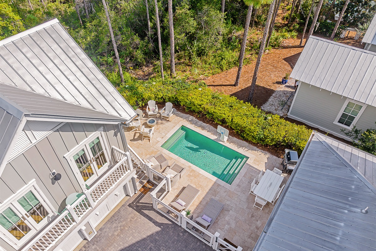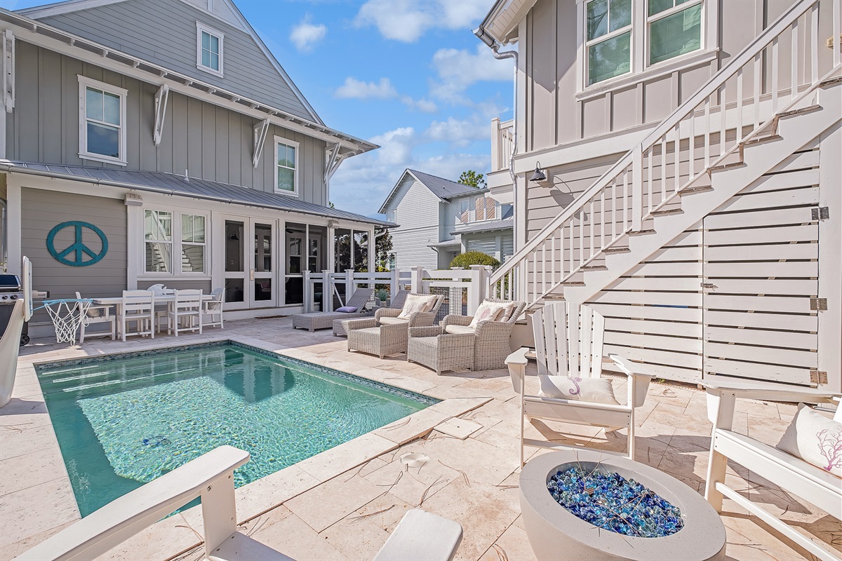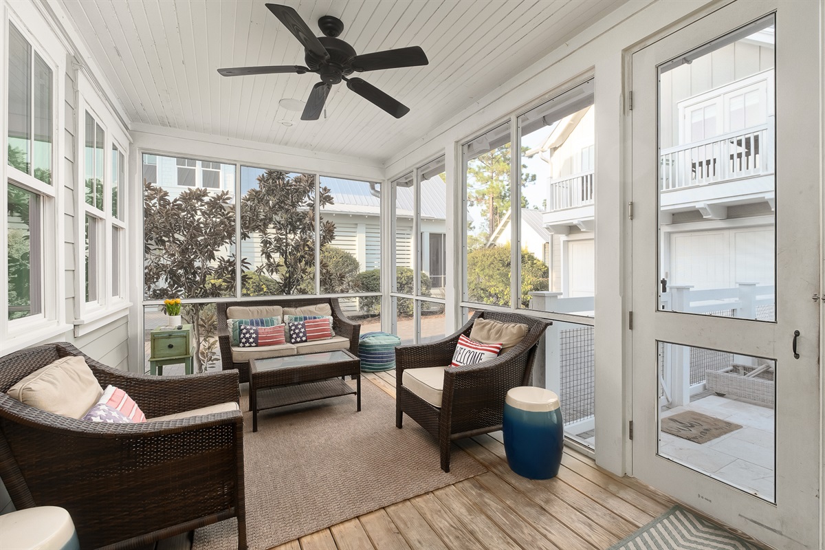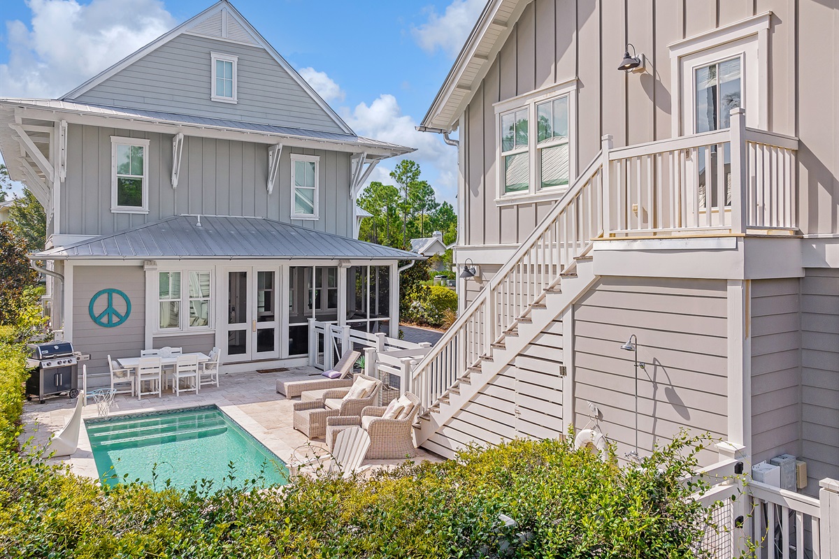 Additional Amenities: Powder room, laundry room, screened-in porch with seating, natural gas grill on pool deck