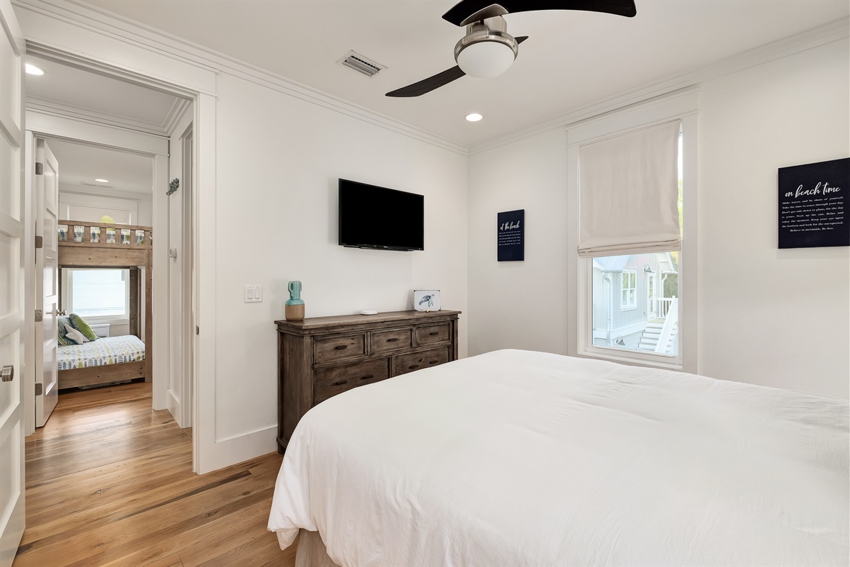 Fifth Bedroom: Two twin bunk beds, TVs, pool views
