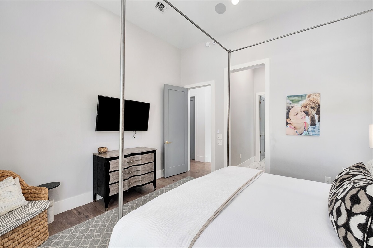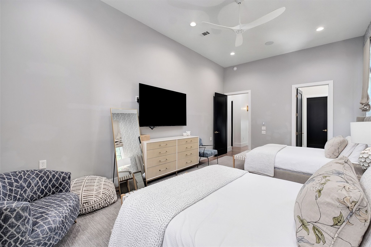 – Guest Suite #1: King bed, balcony access with Gulf views, en-suite bathroom with walk-in shower.