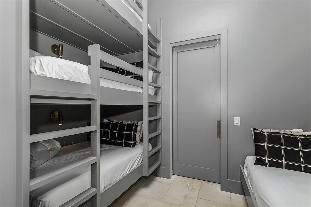 Bunk Room: 3 Twin bunk beds, en-suite bathroom with a tub/shower combo.
