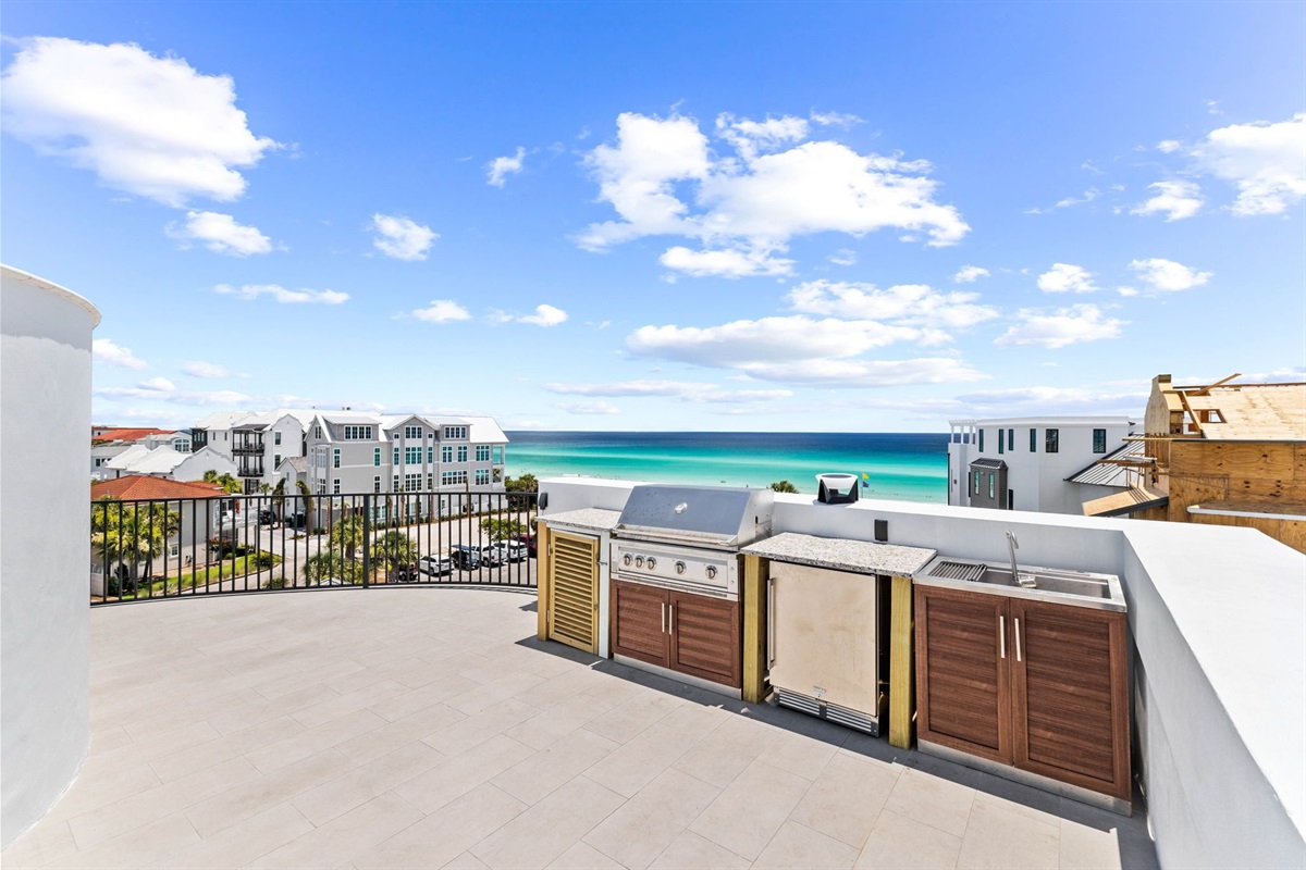 The rooftop is a must see private oasis. The infinity pool is located on the rooftop and provides some of the best views on all of 30A. From the deck you can see panoramic views of the beach, the Gulf, 30A and nearby rooftops. This is the perfect spot for watching the sunrise, the sunset or soaking up the Florida sunshine. An outdoor grill, sink, and prep area are located at the base of the rooftop deck for outdoor cooking an entertaining. In the spring, fall, and winter months, the pool can be heated upon request for an additional fee.