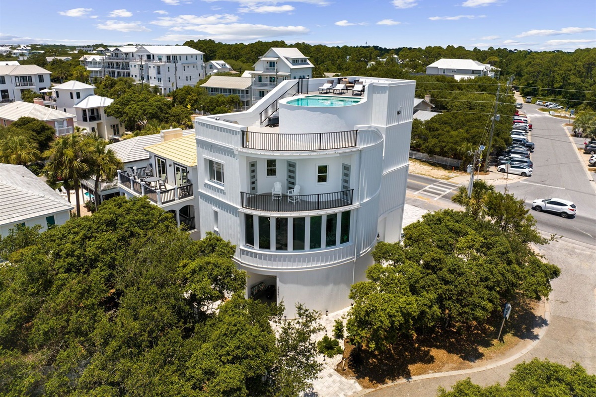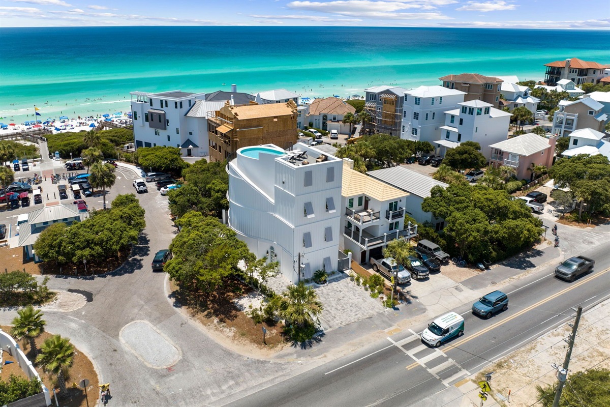 The Sand Castle is a luxurious 5-bedroom, 4-bathroom, Gulf view home located on the south side of 30A. Situated less than 75 yards from a large public beach, this stunning home offers everything you need for a perfect beach getaway including a luxurious roof top pool with incredible panoramic views of the Gulf, Beach, and 30A rooftops nearby. Make lasting memories, watch the sunrise, sunset, and soak in that Florida sunshine.